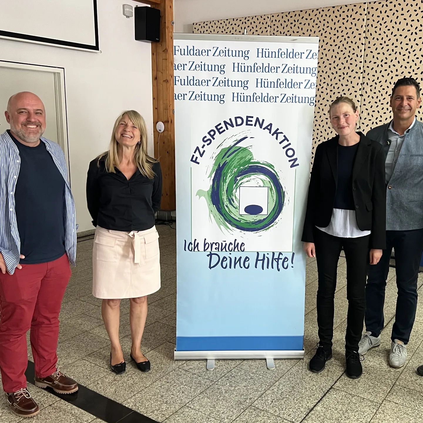 Das Team der zirkuspädagogischen Arbeit der Jugenbildungsstätte Volkersberg freut sich über eine Spende von 1000 Euro. Spender war der Förderverein "Ich brauche deine Hilfe e.V." der Fuldaer Zeitung. Regionale Unterstützung ist dem Förderverein wichtig. Ralf Sauer von der Jugendbildungsstätte (im Bild ganz links) dankte in diesem Zusammenhang der DJK Kothen, die aus vielen Aktionen immer wieder Spenden an den Förderverein der Fuldaer Zeitung weiterleite.