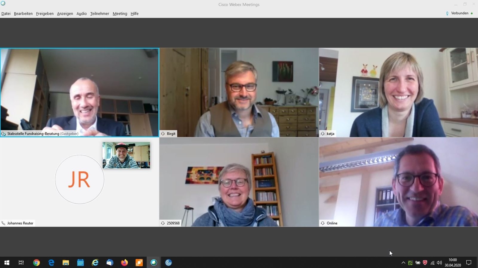 Erstmals seit Bestehen der Stabsstelle Fundraising seit 13 Jahren fand die alle zwei Monate stattfindende Klausur des Beraterkreises als Videokonferenz statt. Wir haben uns intensiv mit dem Thema virtuelle Beratung auseinandergesetzt, den aktuellen Status der einzelnen Projekte reflektiert und Perspektiven für die Zukunft festgelegt. Passend dazu beschäftigten wir uns im Studienteil mit dem Thema „Crowdfunding“. Das Format Videkoklausur hat sich durch eine sorgfältige Vorbereitung bewährt, aber dennoch sind wir bei Präsenztreffen noch einmal deutlich produktiver.